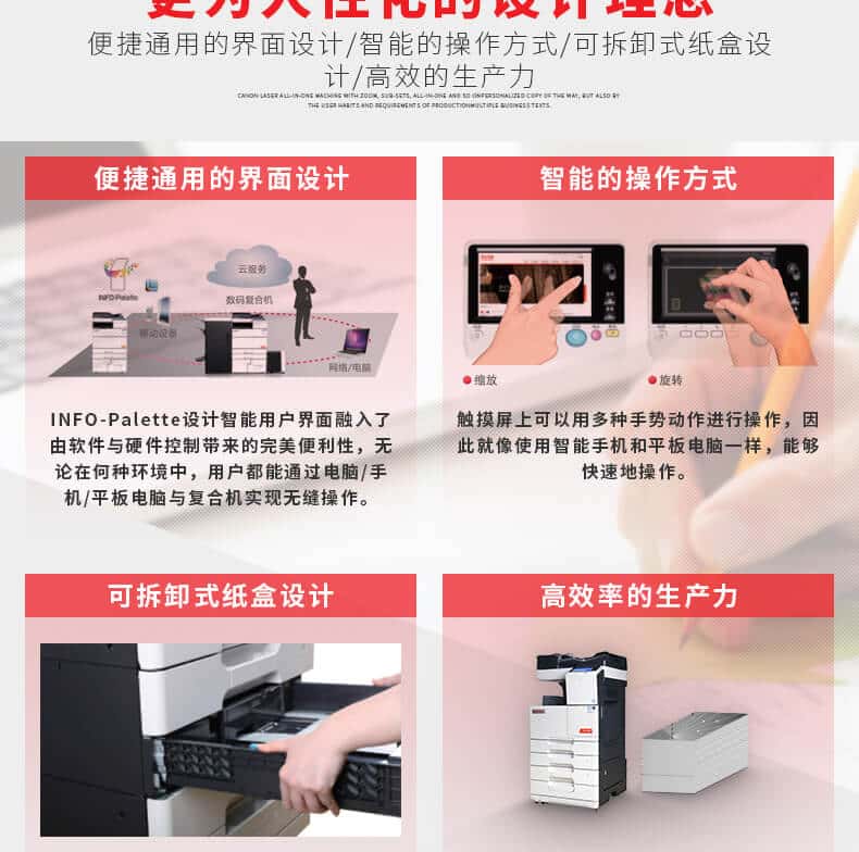 黑白复印/网络打印/彩色扫描/2GB内存/双面单元、2层纸盒(1000页)/手送纸张托盘 100张)