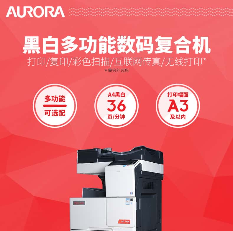 震旦AD369s多功能黑白数码复合机 激光打印机 A3复印机 打印复印扫描一体双面输稿器器置台